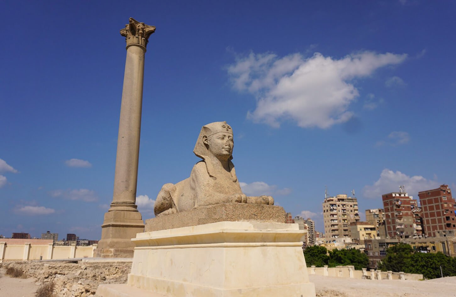 Begin your exploration at the Catacombs of Kom El Shoqafa, a fascinating underground necropolis blending Egyptian, Greek, and Roman styles. Continue to Pompey’s Pillar, a grand Roman triumphal column, and discover the remnants of the Serapeum, once a grand temple dedicated to the god Serapis.
