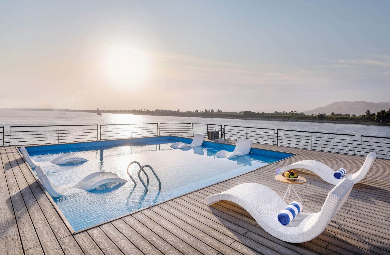 The Historia Nile Cruise is a sophisticated river vessel that blends contemporary style with the enduring beauty of Egypt. Perfect for travelers who value both comfort and cultural immersion, this luxury cruise features elegantly appointed cabins and suites with sweeping Nile views, gourmet dining experiences, and premium facilities such as a spa, swimming pool, and chic lounge areas.