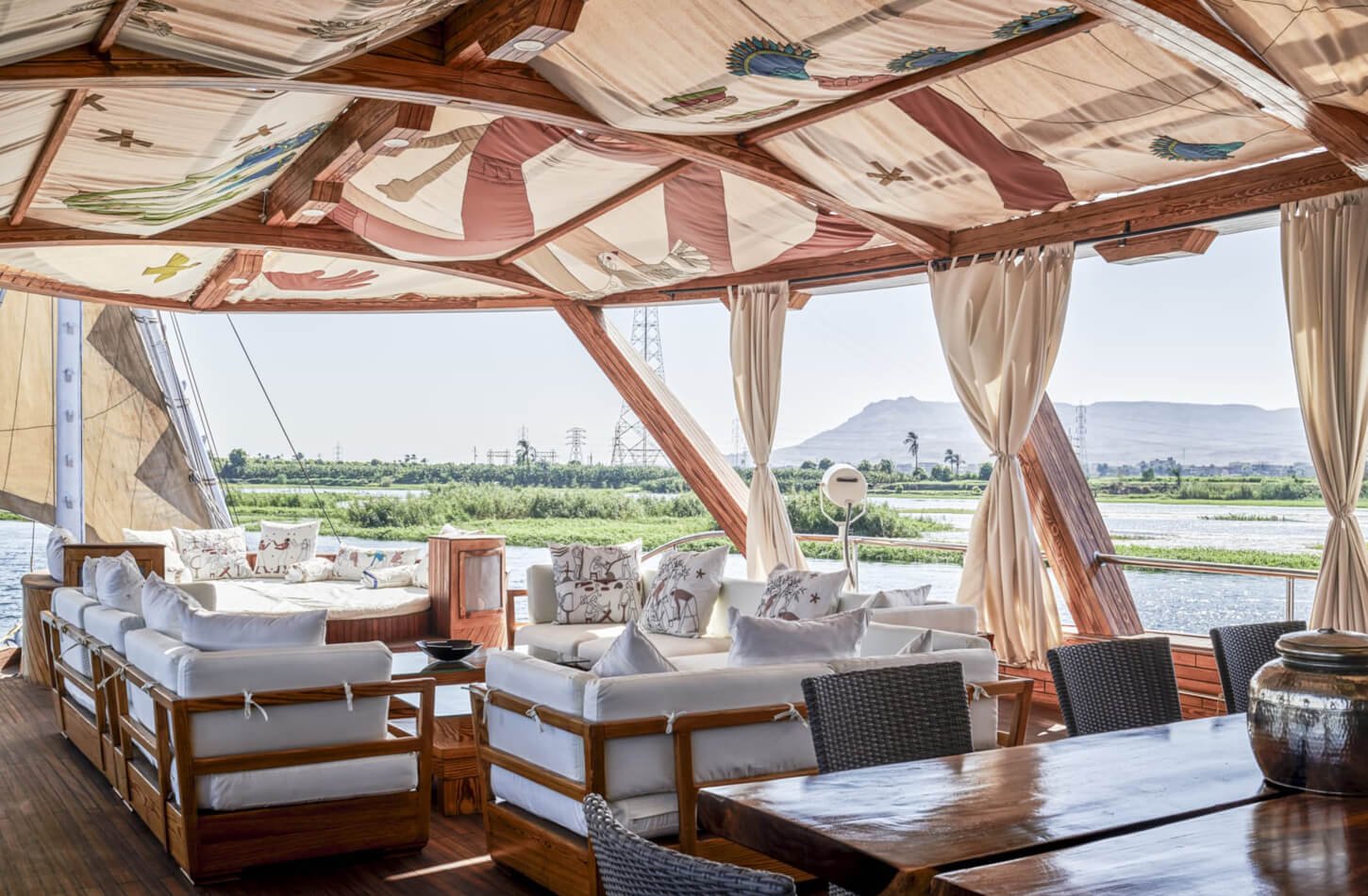 Experience the Nile in a serene and intimate way aboard the Mazaj Seba Dahabiya, a traditional sailing vessel offering a slow-paced, luxurious journey between Luxor and Aswan. With a limited number of cabins, this small dahabiya allows for personalized service, relaxing deck time, and an authentic connection to Egypt’s timeless river landscapes. Sail past charming riverside villages, visit ancient temples, and enjoy gourmet meals on board while taking in the stunning scenery of the Nile.