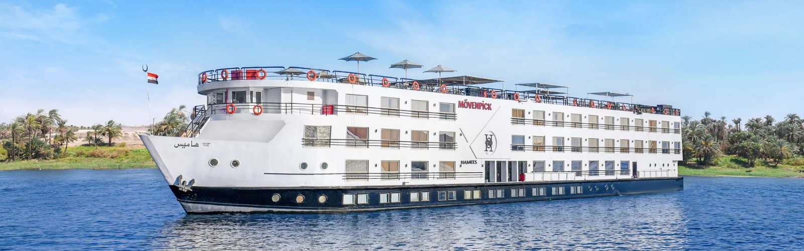 The Mövenpick MS Hamees is a modern and stylish 5-star Nile cruise offering a comfortable and relaxing journey between Luxor and Aswan. Known for its spacious interiors, bright décor, and excellent service, the Hamees delivers a smooth sailing experience with well-appointed cabins, delicious cuisine, and inviting lounging areas—perfect for exploring the timeless beauty of the Nile.