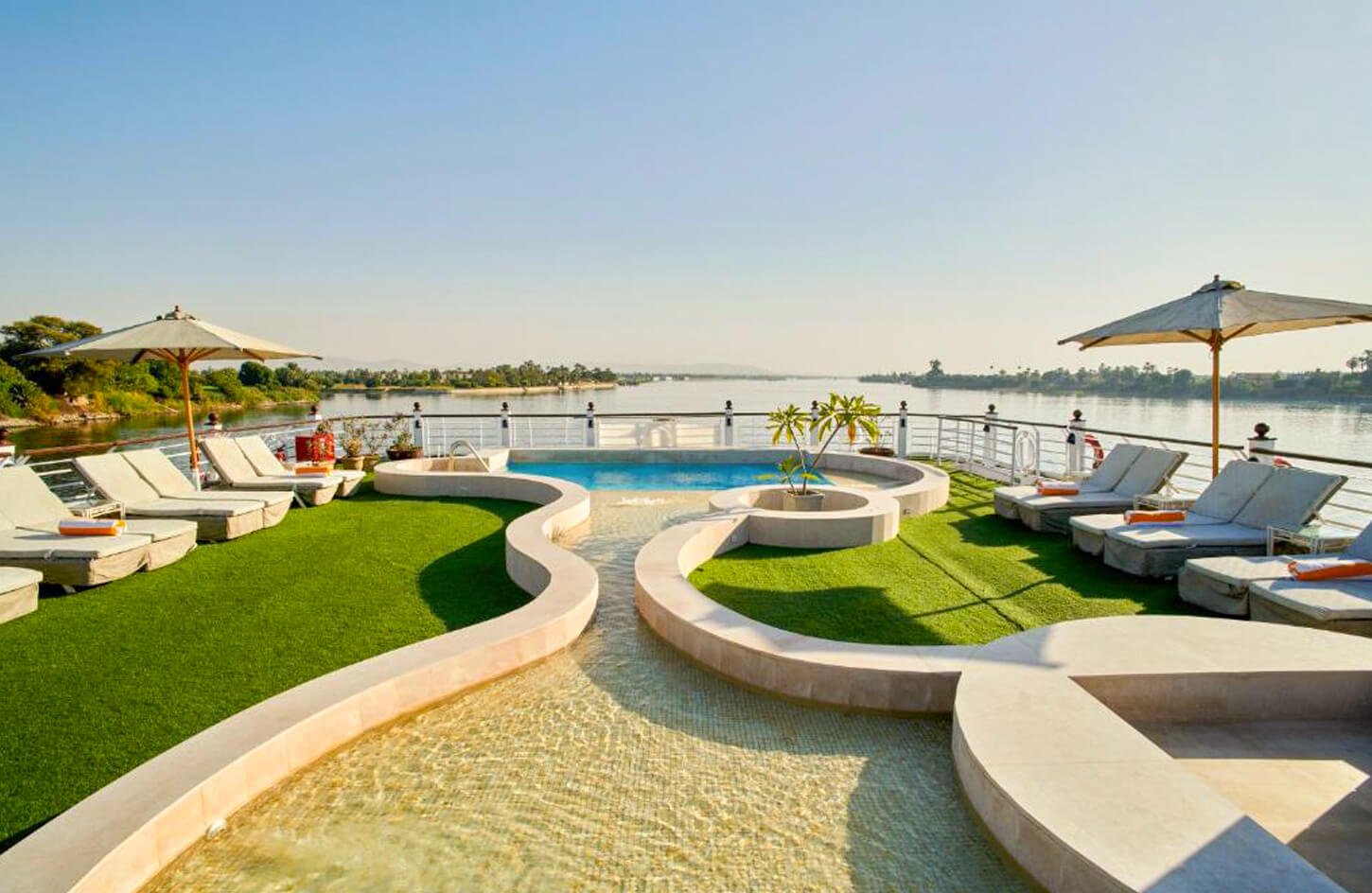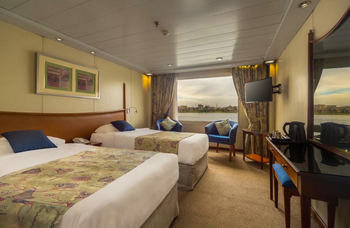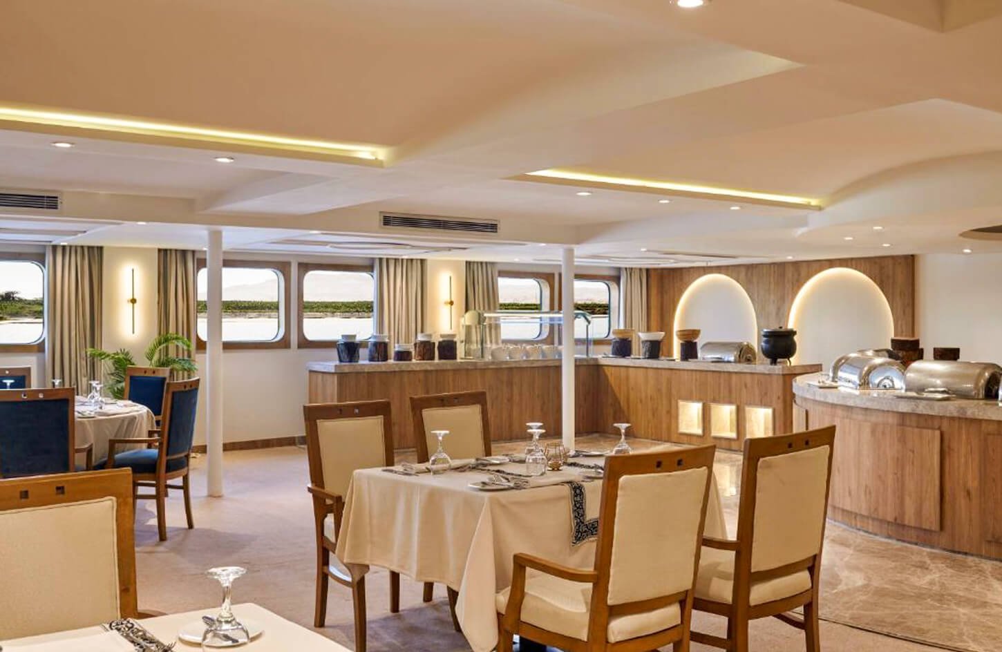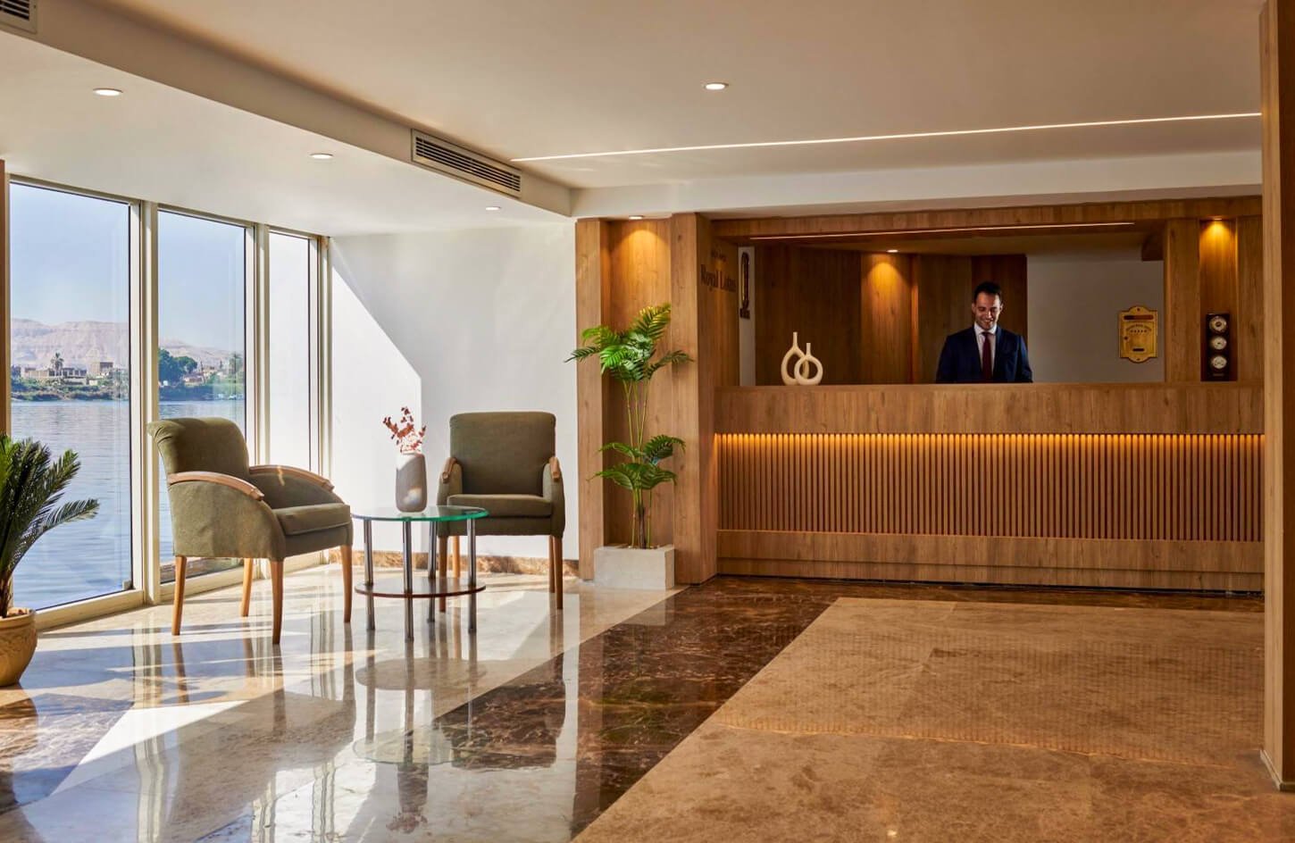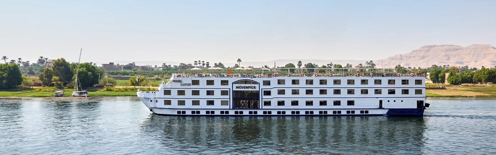 Sail the Nile in elegance aboard the Mövenpick MS Royal Lotus, a refined 5-star cruise offering comfort, style, and unforgettable river views. With its spacious cabins, gourmet dining, and panoramic lounges, the Royal Lotus creates the perfect setting for discovering ancient Egypt—from the temples of Luxor to the serene beauty of Aswan. Every day brings a new moment: sunrise over the Nile, afternoon sailing past palm-lined villages, and evenings filled with onboard relaxation.