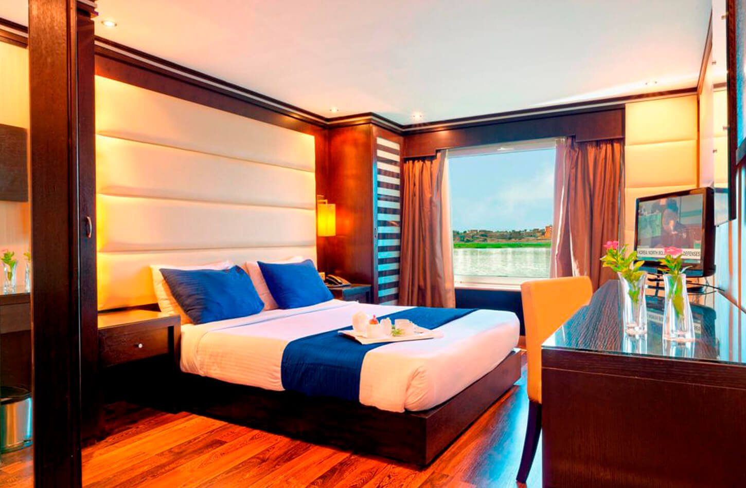 The Nile Premium Nile Cruise offers a sophisticated and comfortable journey along the iconic Nile River. Combining modern luxury with traditional Egyptian charm, this cruise is designed for travelers seeking both relaxation and cultural discovery. Guests enjoy spacious cabins with elegant interiors and large windows that frame stunning views of the river and surrounding landscapes.